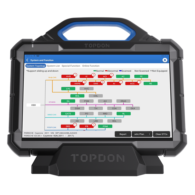 - Topologiemapping: Geeft een visueel overzicht van de communicatiestructuur tussen de verschillende ECU's in het voertuig, wat helpt bij het snel identificeren van communicatiefouten.