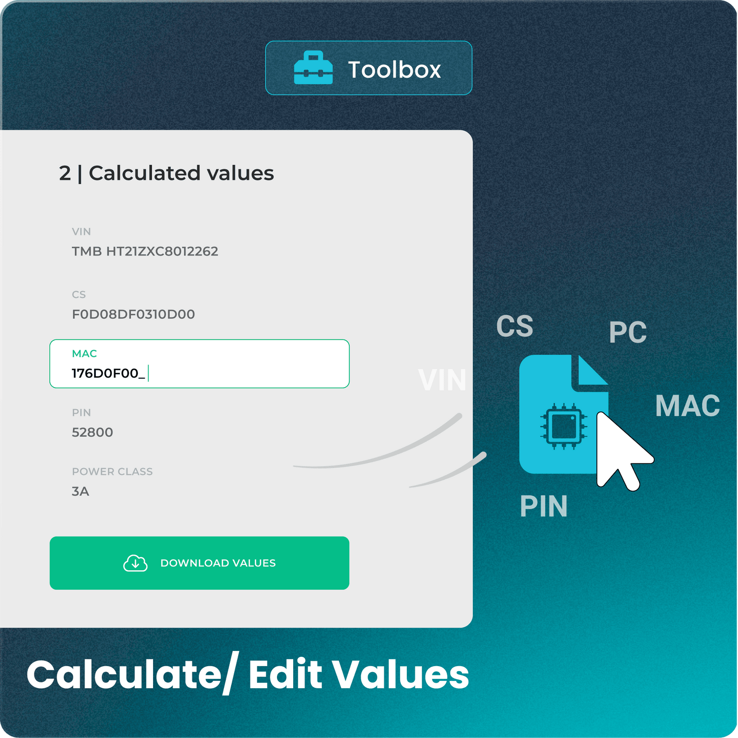 - TCU Waarden Calculator & Editor (VIN/CS/MAC/POWER CLASS): Voor Audi, Seat, Skoda en Volkswagen (DQ200 (MQB/MQB Gen.2), DQ250 (MQB), VL381, DL501). Inclusief automatische detectie van het TCU-type.
