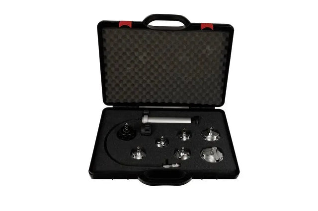 Deze set wordt ingezet om het koelcircuit van een voertuig onder druk te zetten. Hiermee kunnen potentiële lekkages in onderdelen zoals de radiator, slangen, waterpomp of koppakking worden opgespoord.