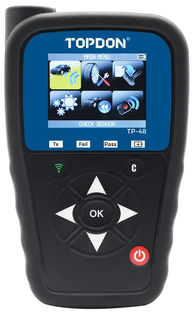 De Topdon TP48 TPMS-programmeur is een specialistisch instrument dat volledige functionaliteit biedt voor de diagnose en configuratie van bandenspanningssystemen. Dit systeem combineert de activatie van originele OEM-sensoren met het programmeren van universele aftermarket-sensoren in één handzaam apparaat. Dankzij de ondersteuning voor zowel 315 MHz als 433 MHz frequenties biedt de programmeur een marktdekking van meer dan 98%, waarmee het instrument compatibel is voor een breed spectrum aan voertuigen, variërend van personenwagens en motorfietsen tot lichte bedrijfswagens en moderne elektrische voertuigen (EV).